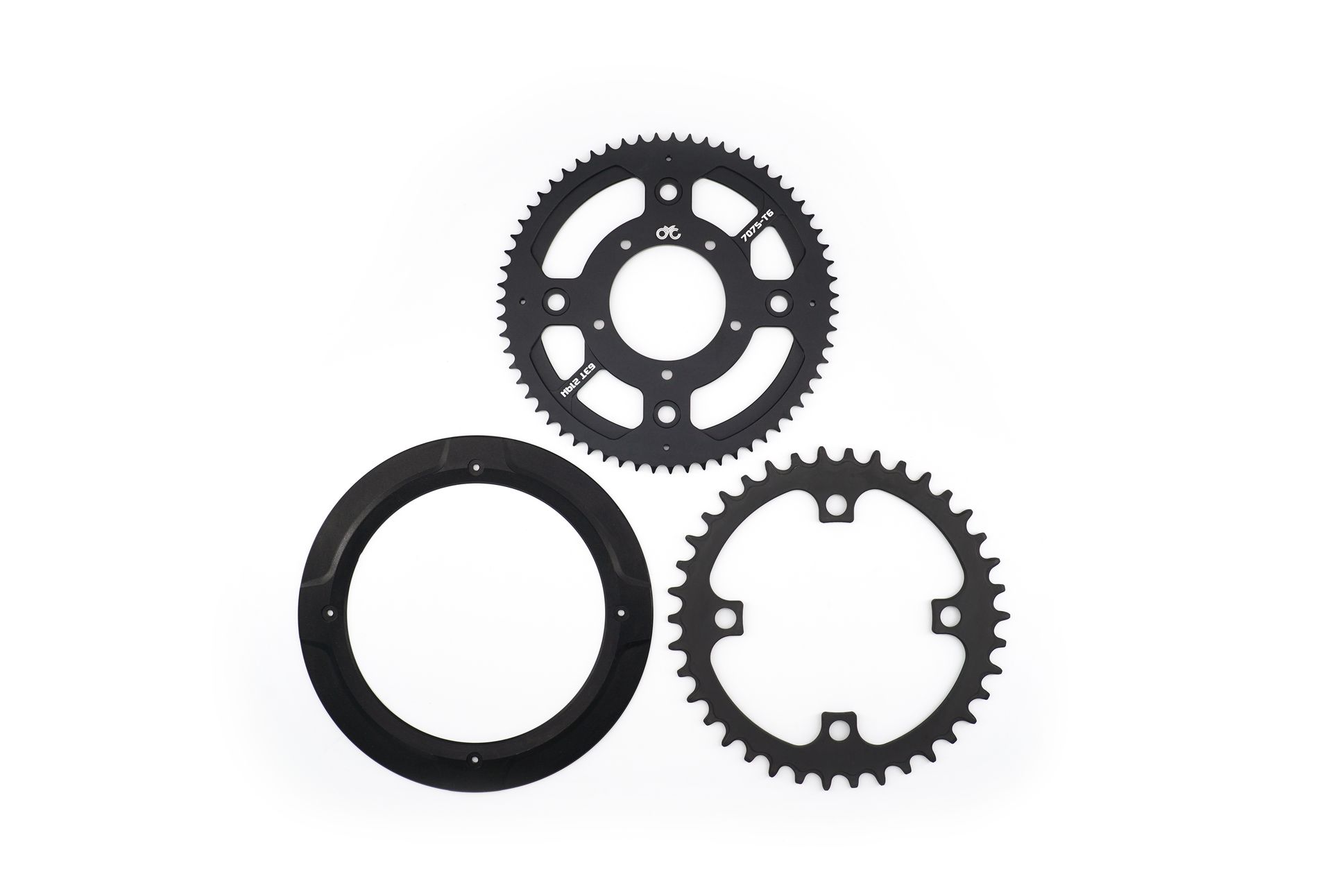 Mounting solution of the 219H motor chainring | Mounting on the freewheel The motor chainring mounts on the freewheel directly. | 104BCD The motor chainring mounts onto the freewheel/ torque sensor housing using the 104BCD mounting standard. | 104BCD Same as version 2.0. |